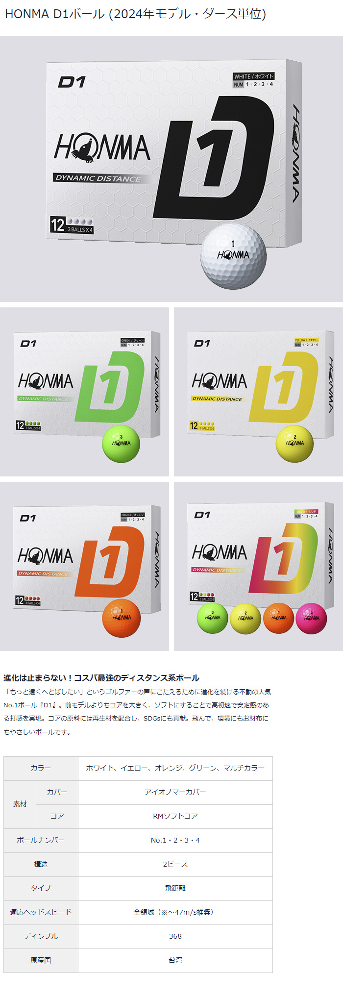 【総額 3万円以上 購入で送料無料】【正規品】HONMA ゴルフ■D1 ボール■2024年モデル■1ダース〜