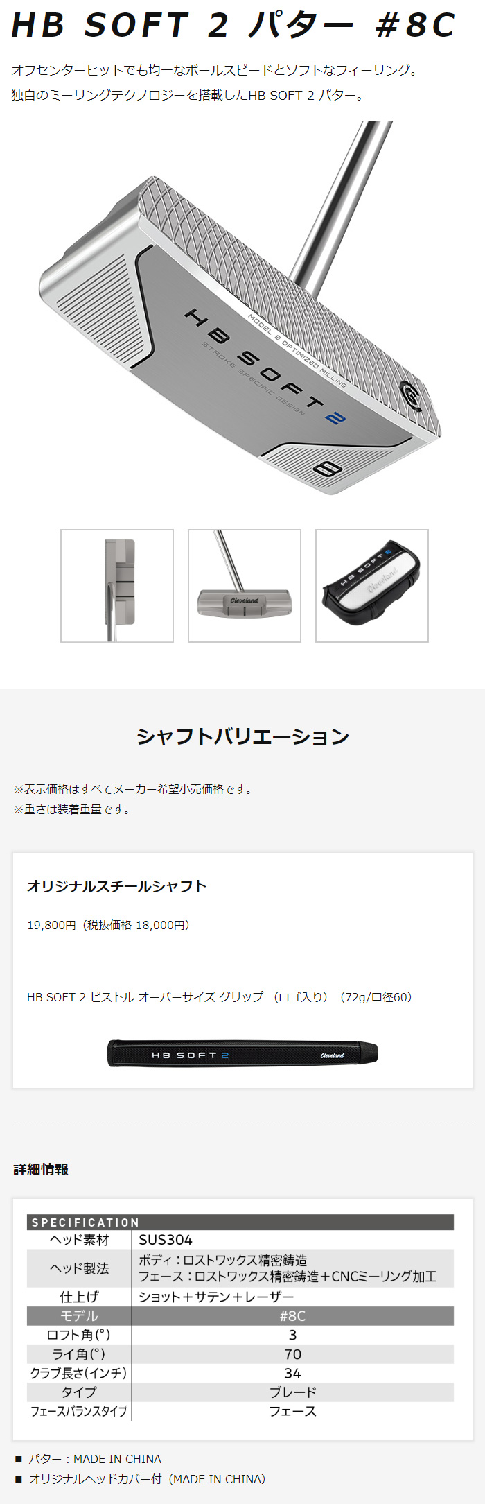 クリーブランド■HB SOFT 2■パター■#8C(ブレードタイプ)■34インチ■2024年モデル詳細情報